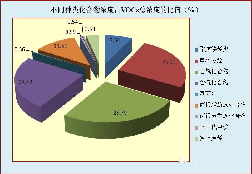 對(duì)不同種類(lèi)VOCs的濃度分析發(fā)現(xiàn),單環(huán)芳烴(25.72%)、含氧化...